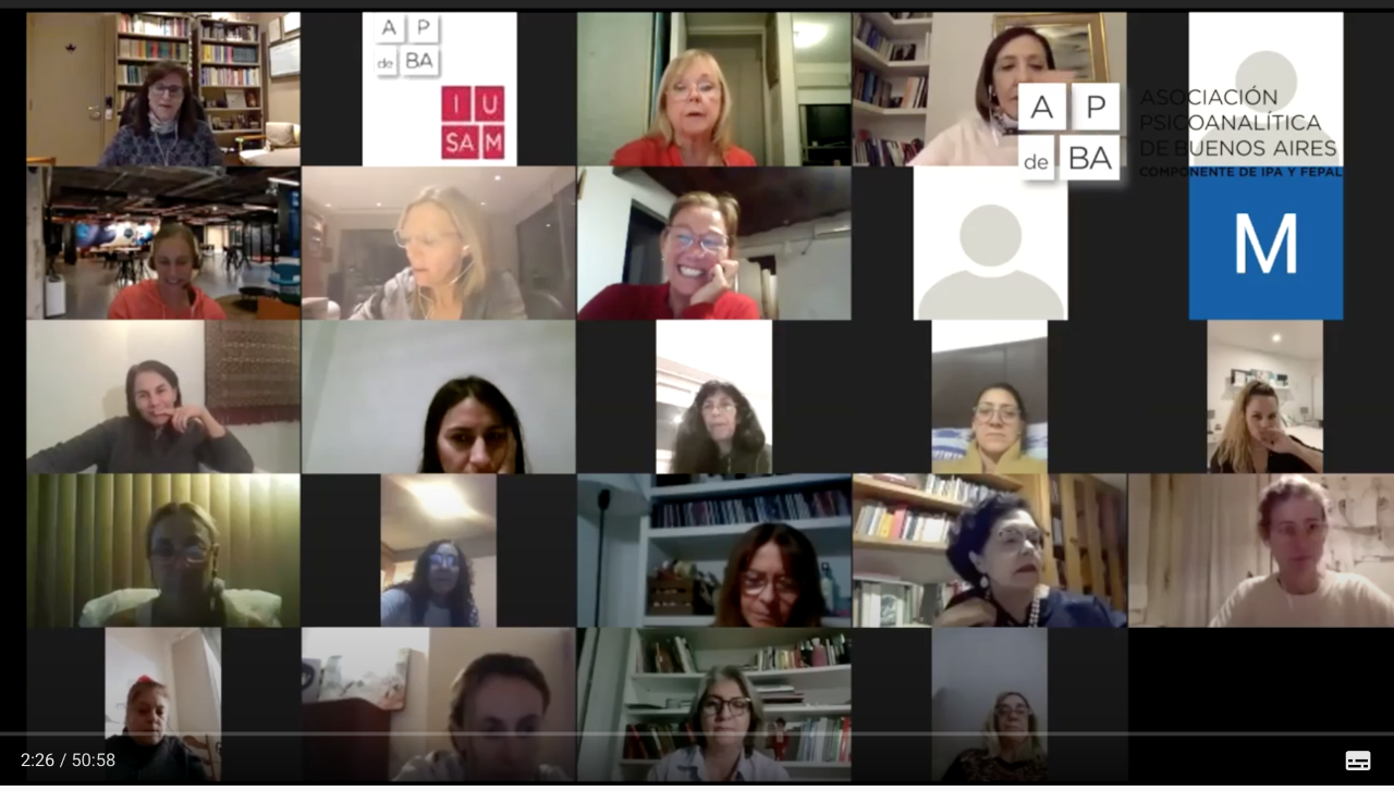 Este zoom tiene unos 30 miembros estables durante el mes y cuenta con una concurrencia de entre 60 y 70 participantes. Está dirigido por Sara Zac, Diana Zac, Isabel Mansione y Noemí Milton . Por encuentro participan entre 60 y 80 personas de Buenos Aires, Mendoza, Misiones, Entre Ríos y Córdoba. Se realiza los jueves de 18 a 19 mediante ApdeBa y la única condiciones es inscribirse previamente en el mail cursos@apdeba.org.