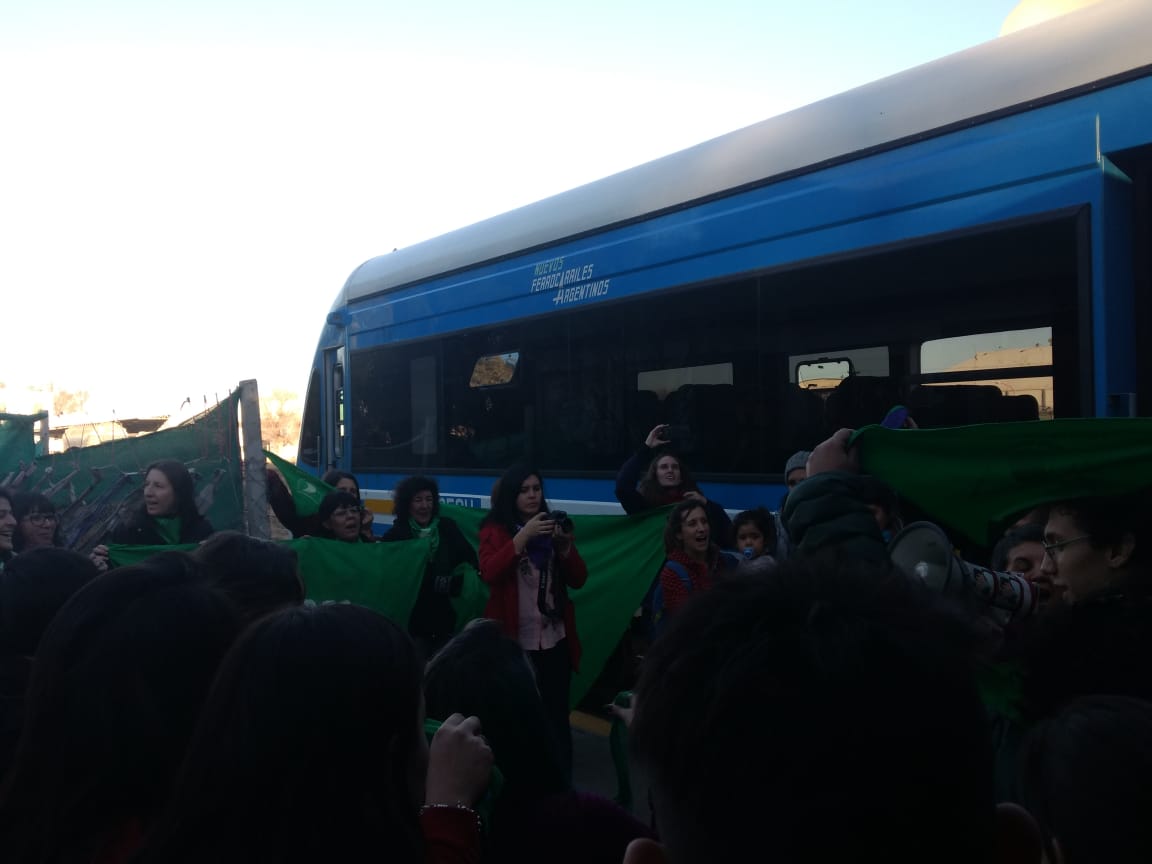 Por otra parte se realizó una actividad que fue convocada por la agrupación feminista La Revuelta y que comenzó en El Andén, en Cipolletti, y se trasladó en el trén del Valle hasta la estación de Neuquén.