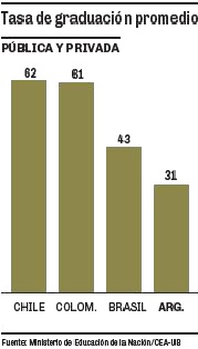 La situación es todavía más preocupante cuando las comparaciones son con las universidades de países de la región. En Chile, computando el promedio de claustros públicos y privados, este indicador se ubica en el 62%, duplicando al que obtiene la Argentina. (Ver infograma adjunto)