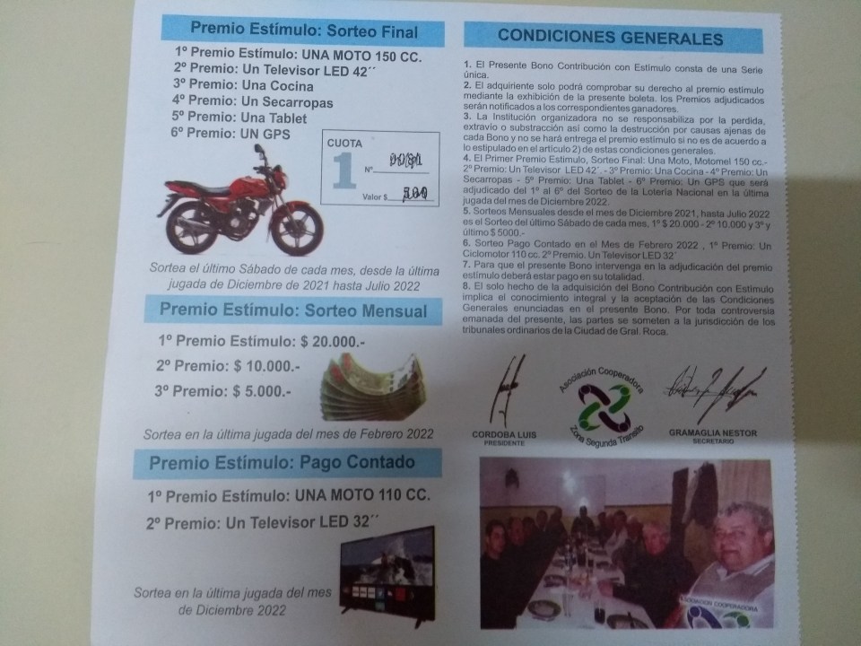 Uno de ellos es el bono contribución, que está circulando su venta desde Allen a Chichinales.