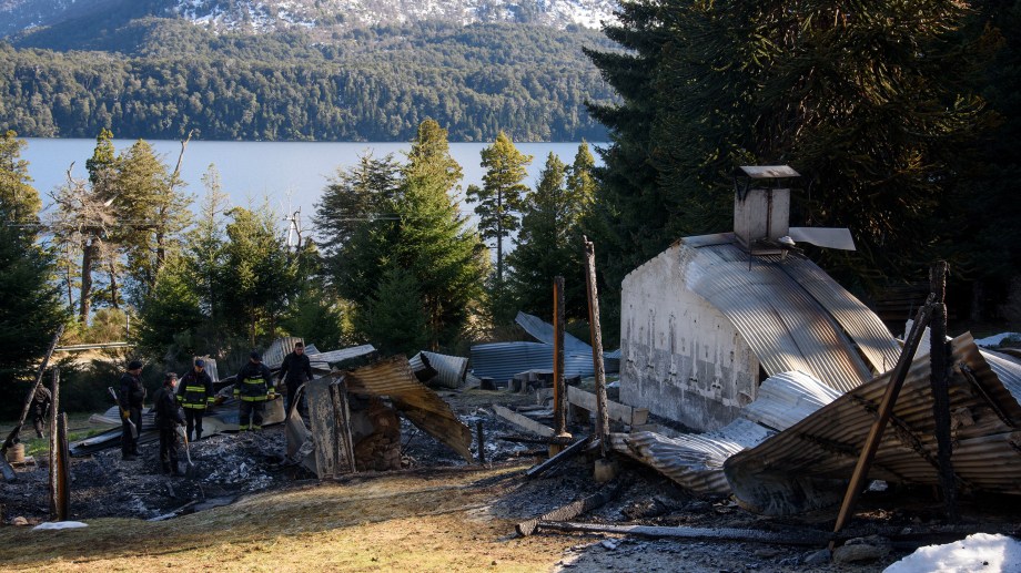 A escasos metros de la ruta nacional 40, camino a El Bolsón, bomberos de la Policía Federal de Buenos Aires tomaban fotografías, evaluaban el lugar y hacían anotaciones en el predio donde asomaban los restos de tres estructuras completamente destrozadas por el fuego.