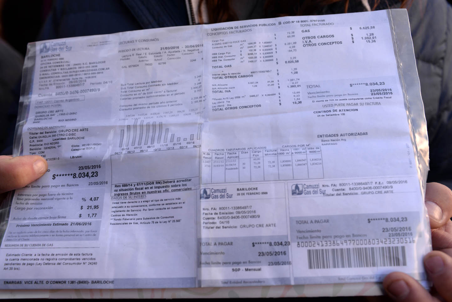 La factura de Cre-Arte pasó de 241 a 8.034 pesos.