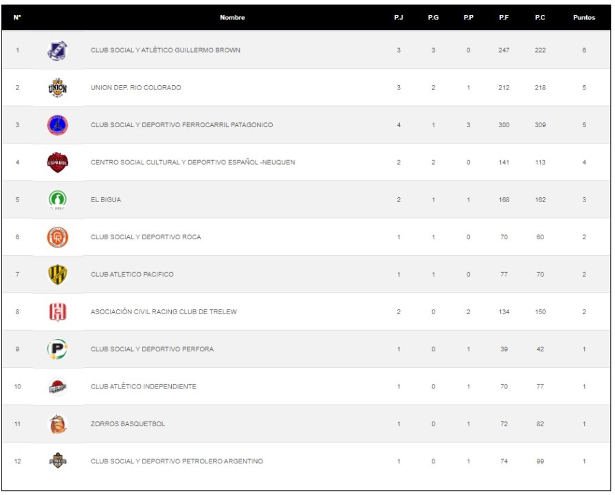 Tabla de posiciones de la División Sur de la Liga Federal