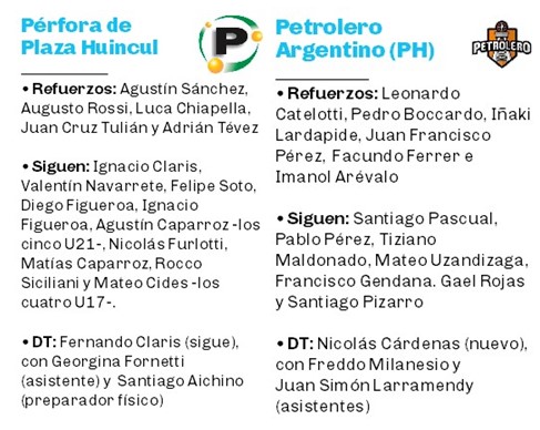 En la previa, sin dudas, el agite anduvo por Plaza Huincul. Pérfora y Petrolero, que vienen de una magra participación en la LFB, están dispuestos a meterse en la pelea y tienen planteles casi nuevos. Esto generó una gran expectativa en la comarca y por eso, entresemana, llenaron el Municipal de Cutral Co en un amistoso que fue para el Verde por 86-70. Hay muchas caras con pasado reciente en Liga Argentina y por eso parten como favoritos.