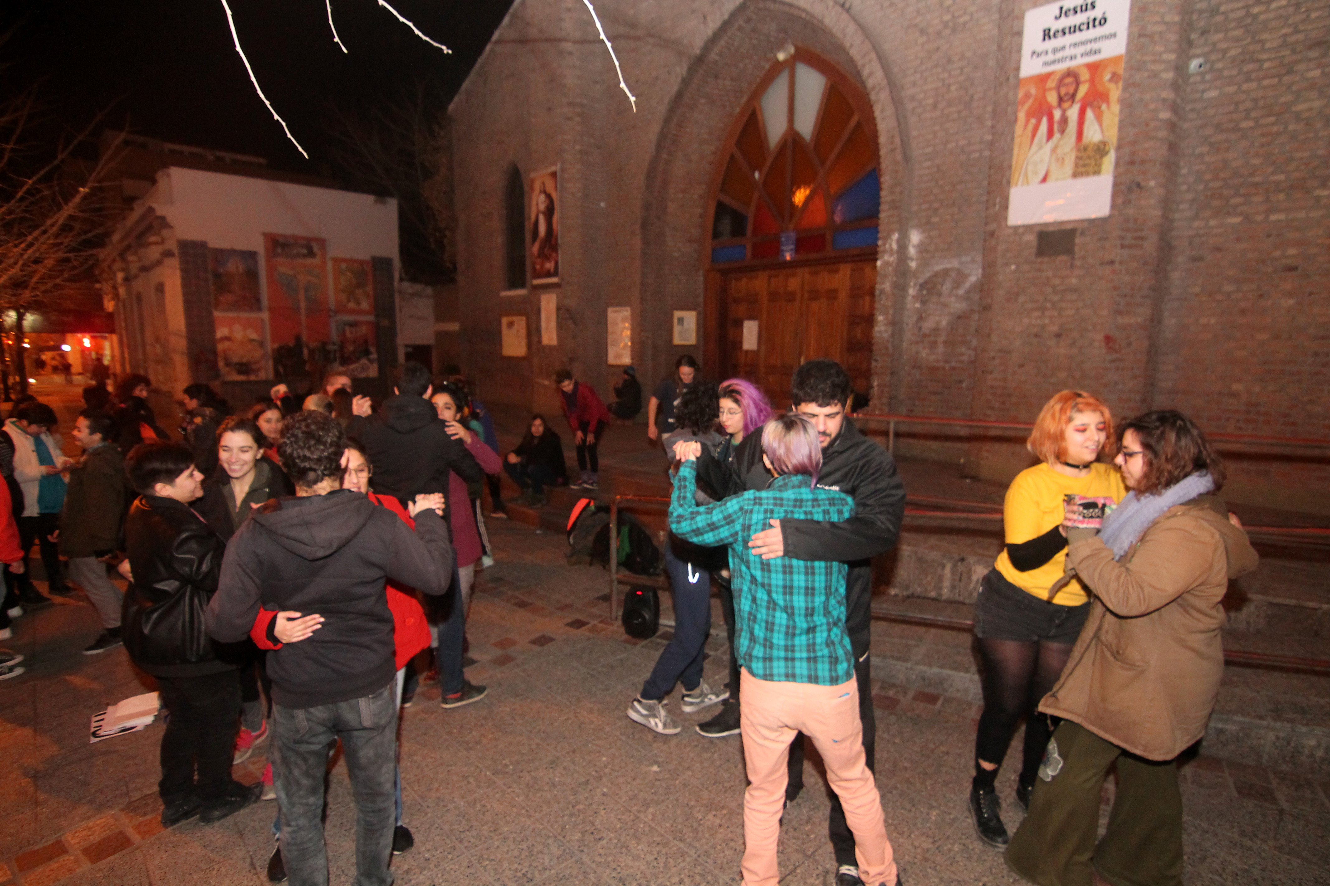El «besazo» se desarrolló sin incidentes y terminó con un baile para afrontar los 5 grados de sensación términa a esa hora en Neuquén capital.