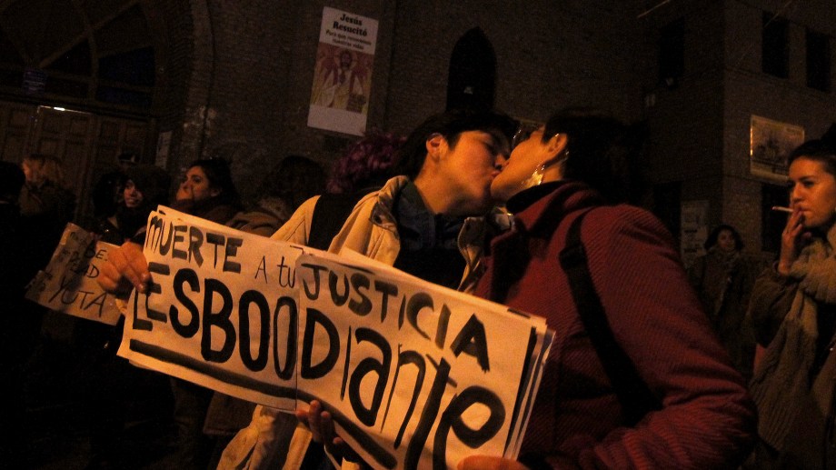 «Definimos esta actividad después de enterarnos del fallo (contra Mariana Gómez, en Buenos Aires, el viernes) y decidimos convocarnos y marchar. Nuestro acto político es el beso, no habrá acto ni oradoras u oradores, porque nuestros besos no le pertenecen al sistema, son nuestros», dijo Fabiana, integrante de un colectivo de lesbianas.