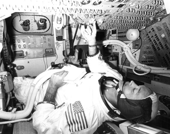 A los dos exploradores solo les queda ordenar su cabina, despresurizar el LEM, abrir la puerta, tirar a la Luna sus “basuras”, cerrar de nuevo la escotilla, represurizar por última vez el módulo, comer y dormir.
