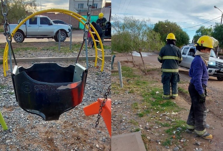“Recibimos el llamado en la central de la mamá de la nena que estaba desesperada porque no la podía sacar. Sus piernas se habían quedado trabadas”, indicó Patricio Álvarez, del cuartel de bomberos de Centenario.