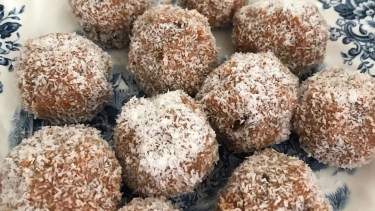 En un bol mezclar la mantequilla y el dulce de leche. Agregar la taza té de coco y el mix de frutos secos. Integrar todo. Con ayuda de las manos formar los bombones. Por último en un plato volcar un poco de coco rallado y pasar cada bombón. Servir en el plato que más te guste y a disfrutar.