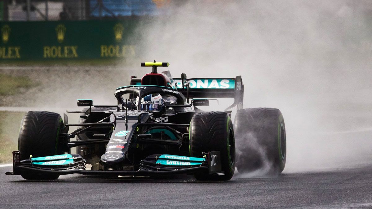 La prueba se disputó sobre mojado, aunque la lluvia fue leve e intermitente, y los neumáticos intermedios se llevaron todo el protagonismo, en la que prevaleció Bottas, quien llegó al primer lugar a 11 vueltas del cierre.