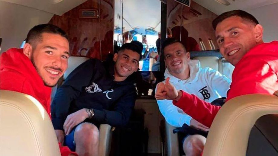 Con el visto bueno de Conmebol, Martínez, Romero, Buendía y Lo Celso se subieron al colectivo rumbo al estadio junto al resto del plantel. Excepto Buendía, los otros tres arrancaron como titulares.