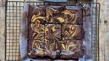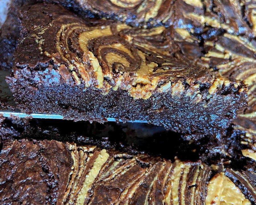 Mezclá está preparación con el chocolate derretido y último los secos. Ahora unas cucharadas de mantequilla de maní, o puede ser dulce de leche repostero. Horno a 180° C unos 25 minutos. Dejá que enfríe y date un gustito.