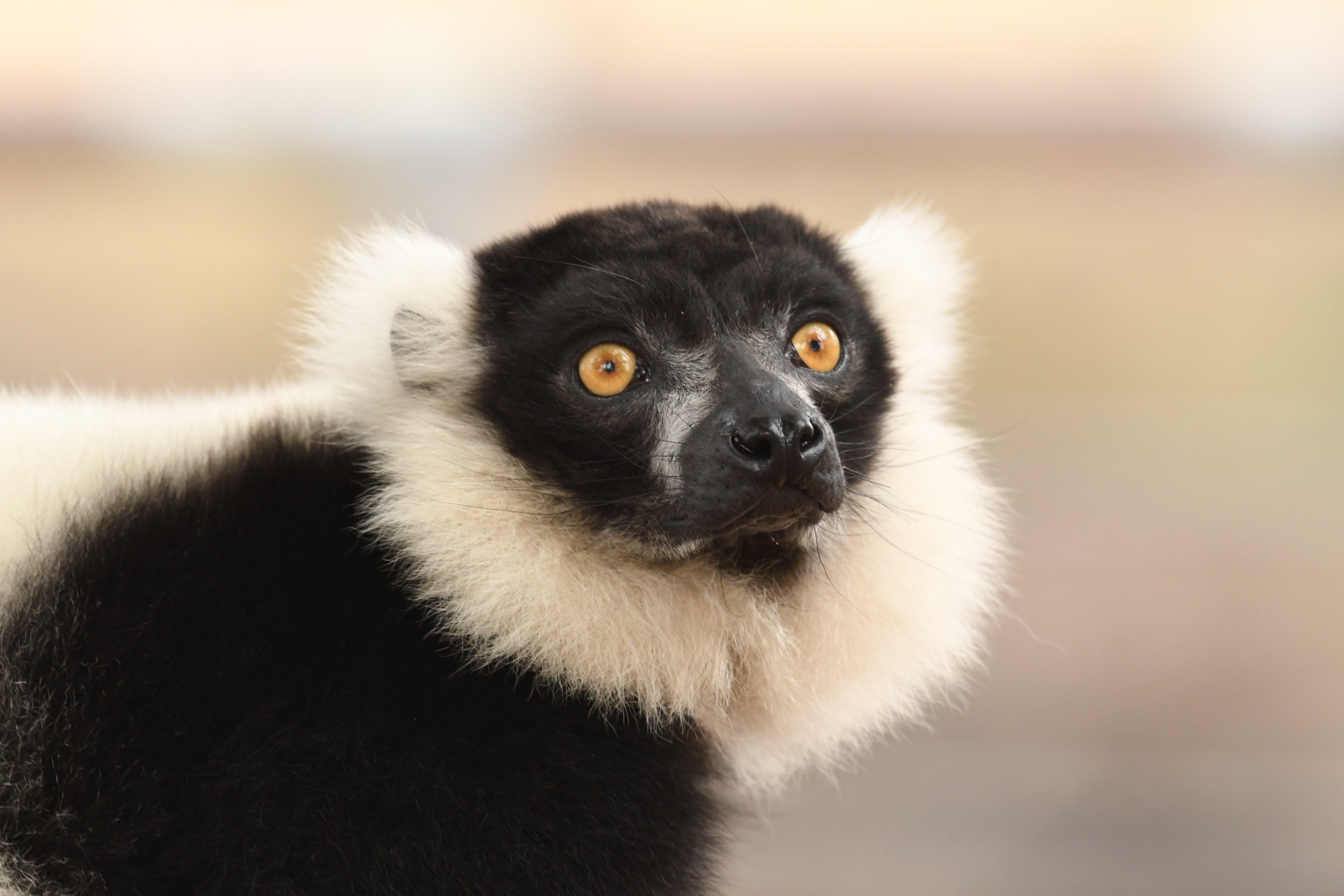 Los lémures blancos estaban ansiosos por comer. Con sus caras de viejos despeinados, espiaban y escapaban.