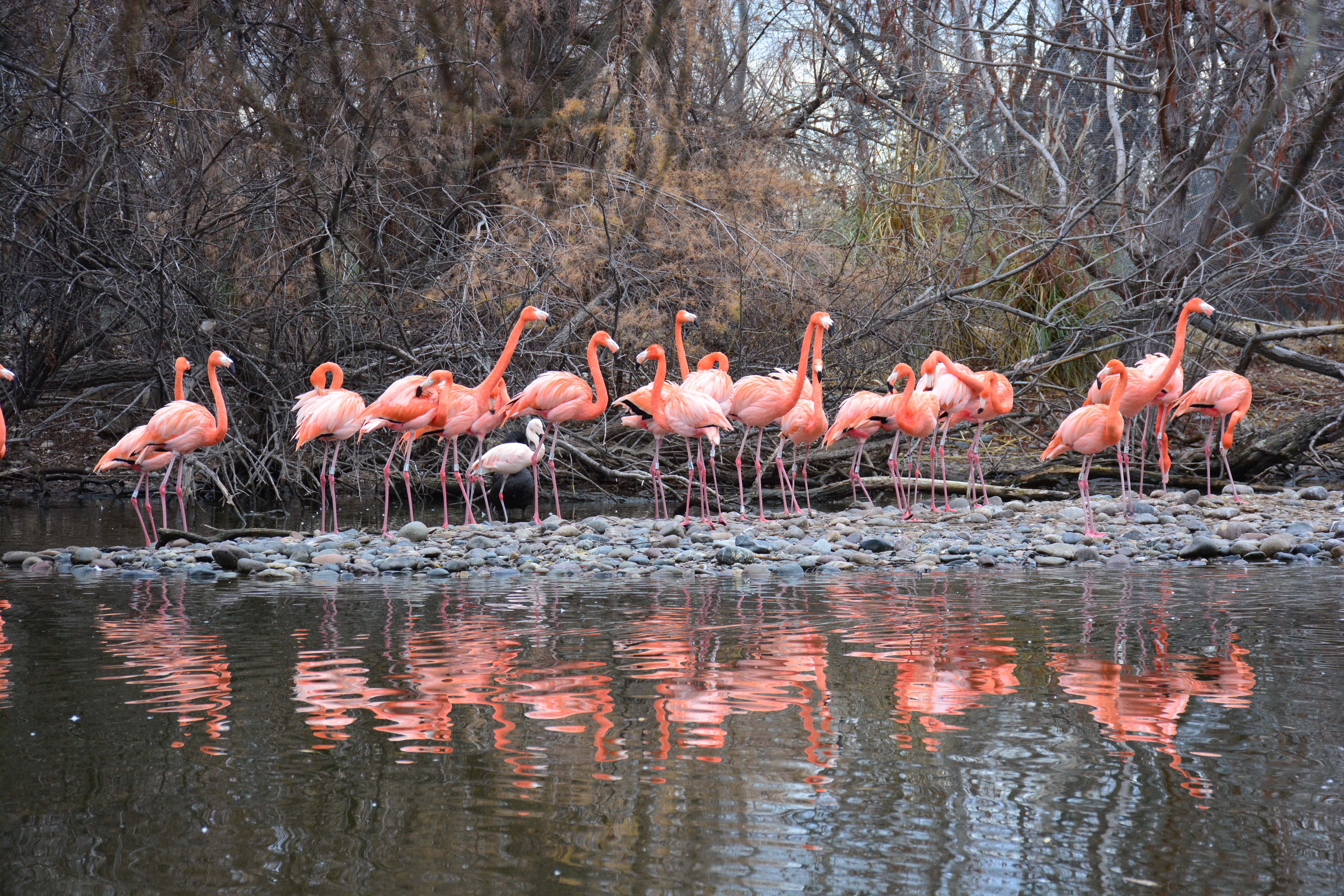En un espacio contenido por una red metálica gigante, volaban guacamayos rojos, otros azules y los flamencos caribeños pintaban de un rosa salmón la laguna con colores opacos del invierno.