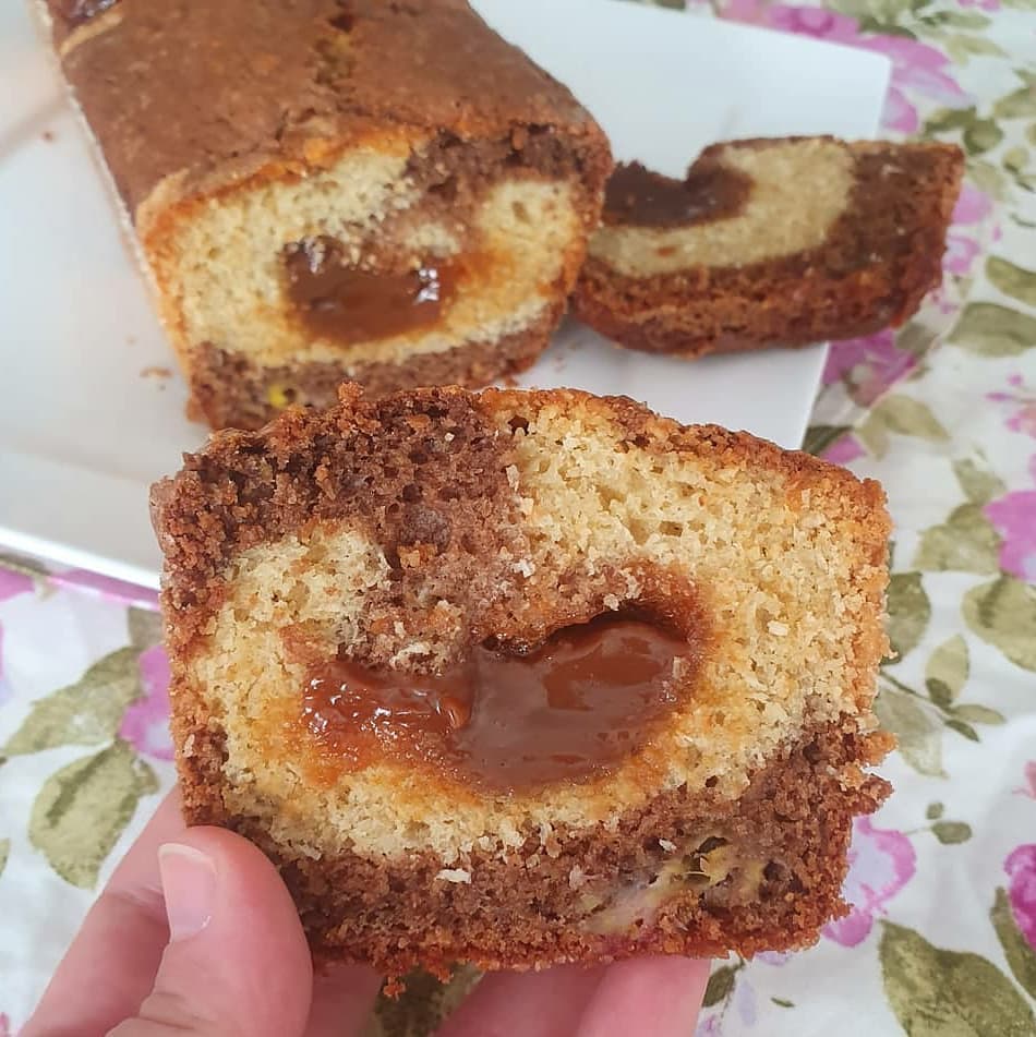 Budín marmolado con coco y banana con cacao