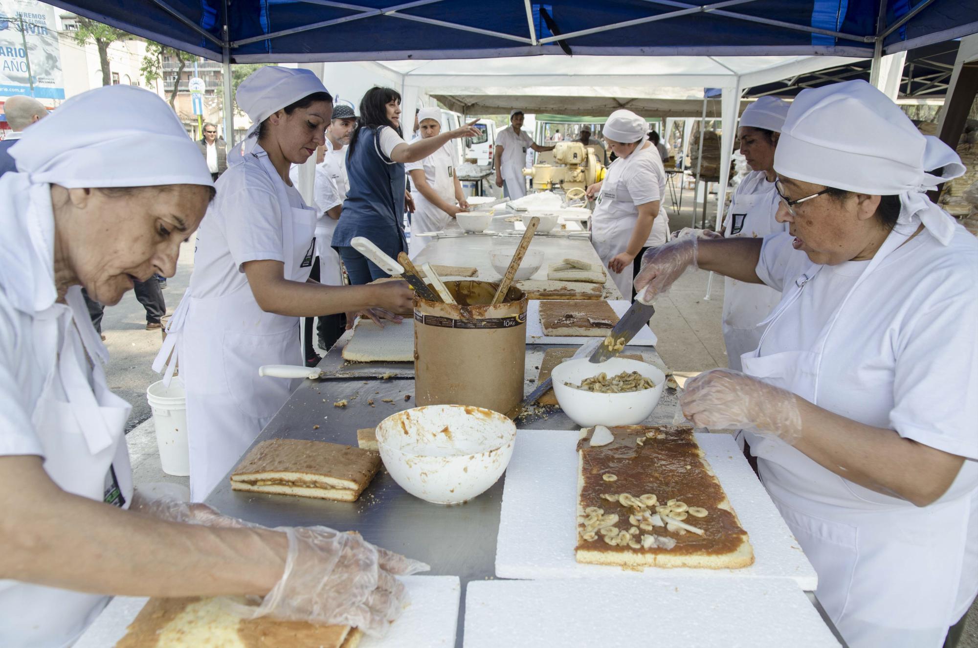 Desde muy temprano muchos vecinos se acercaron hasta el parque Avellaneda para observar el trabajo de los pasteleros, aunque las porciones -se calcula que serán unas 10.000- serán repartidas durante los actos oficiales programados por el municipio capitalino que incluyen espectáculos artísticos y una feria denominada “Entre Letras y Sabores”, donde diversas colectividades expondrán su gastronomía, música y tradiciones.