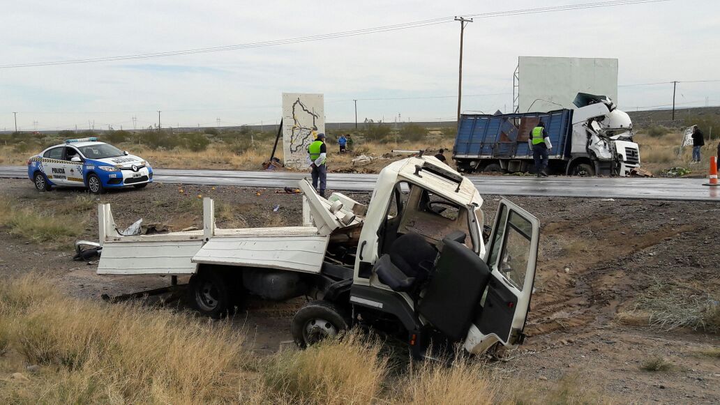 El choque frontal de dos camiones en Arroyito terminó con un camionero fallecido y sus acompañantes, una mujer de 24 y un niño de un año y medio de edad, heridos.
