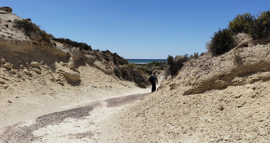 Recorrer algunas playas de Las Grutas es ingresar a una máquina del tiempo, que nos puede transportar a 12 millones de años atrás, cuando el mar ocupaba espacios que ahora están cubiertos por un delicado colchón de arena.