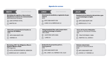 Entre las temáticas abordadas hay múltiples vertientes pues se puede asistir a cursos específicos de la industria del gas y el petróleo como por ejemplo el workshop que en pocos días se distará sobe Logística y Operaciones Simultáneas en pozos no convencionales.