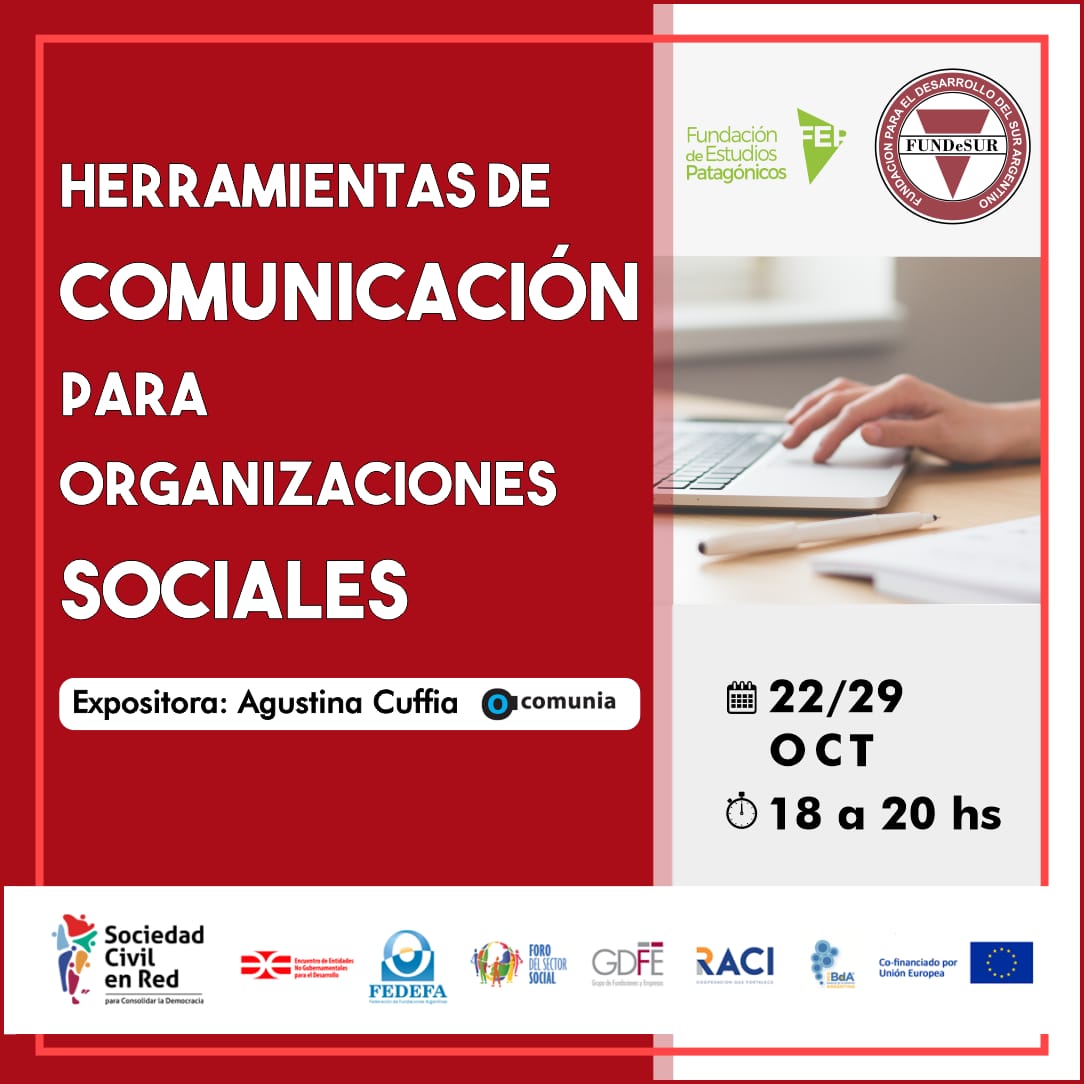 La actividad, vía zoom, es organizada por Fundesur y la Fundación de Estudios Patagónicos. Forma parte del ciclo de capacitaciones para el fortalecimiento de las organizaciones patagónicas. La capacitación se dividirá en dos encuentros: jueves 22 de octubre y jueves 29 de octubre, de 18 a 20hs.