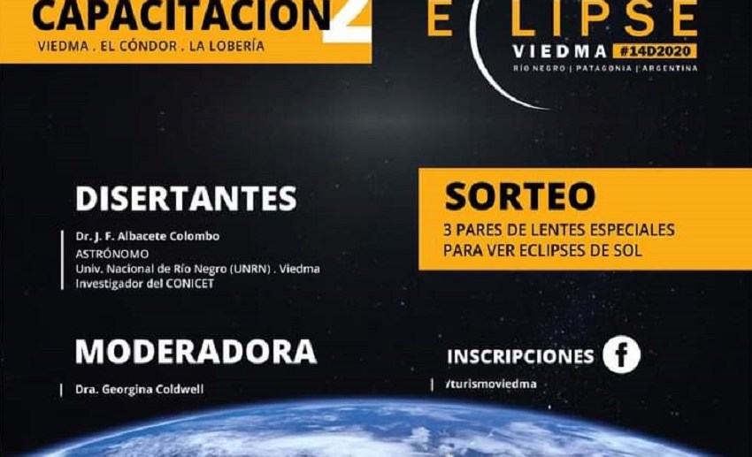 La capacitación estará a cargo del viedmense Facundo Albacete, integrante de la Asociación Argentina de Astronomía; quien expondrán de manera didáctica qué es un eclipse, los tipos y etapas del mismo. Asimismo, se brindarán especificaciones sobre los mejores lugares para observar el eclipse total de sol que ocurrirá el 14 de diciembre, propiciando la forma correcta de verlo sin perjudicar la visión.