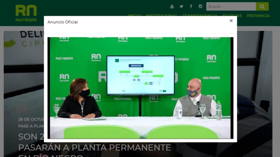 La gobernadora Arabela Carreras y el titular del Ipross, Alejandro Marenco; presentaron esta mañana el Plan Preventivo de Testeo Rápido para personas con síntomas de covid 19 que se pone en práctica para afiliados a la obra social provincial.