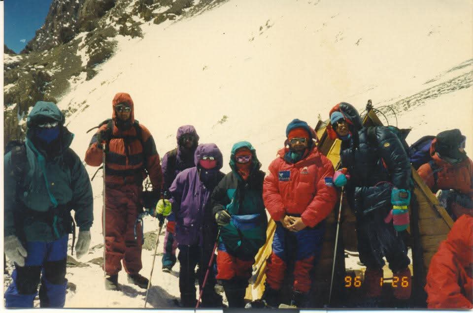 “El día que salimos a la cumbre las condiciones climáticas empezaron a ser cada vez más amenazantes, no había pronósticos digitales del tiempo, el viento aumentaba y las nubes cubrieron lo alto de la montaña. Estábamos a unos 6000 metros de altura en un campamento que llamábamos Cólera, poco antes de los restos del refugio Independencia. Nos detuvimos, traté de ser muy claro y dije: esta es la última oportunidad que tenemos de subir y va a ser muy duro, el clima va a empeorar con seguridad, podemos volver, no es imprescindible seguir, las miradas se arremolinaron como las nubes y la pregunta quedó flotando mientras el viento empezaba a empujar, uno decidió bajar, los demás subimos. Cuando alcanzamos la cumbre las nubes parecían estallar contra la roca y el sonido formidable del viento se había convertido en la música de fondo de un día lleno de emociones y sufrimientos que todavía prometía más. El descenso fue duro, con preocupación para no opacar la alegría de haber conquistado la cumbre. Cuando pasamos el peñón Martínez, yo respiré y me relajé un poco, ya no importaba mucho que fuéramos despacio, no quedaban muchos obstáculos más que el agotamiento, hasta las carpas que estaban en el Campo 2, ese páramo reseco y helado. Abrimos los cierres de las carpas a las diez de la noche. Una vez instalados, dos miembros del equipo descubrieron congelamientos en sus dedos. A pesar de la hora los acomodamos para evitar algún mal mayor”.
