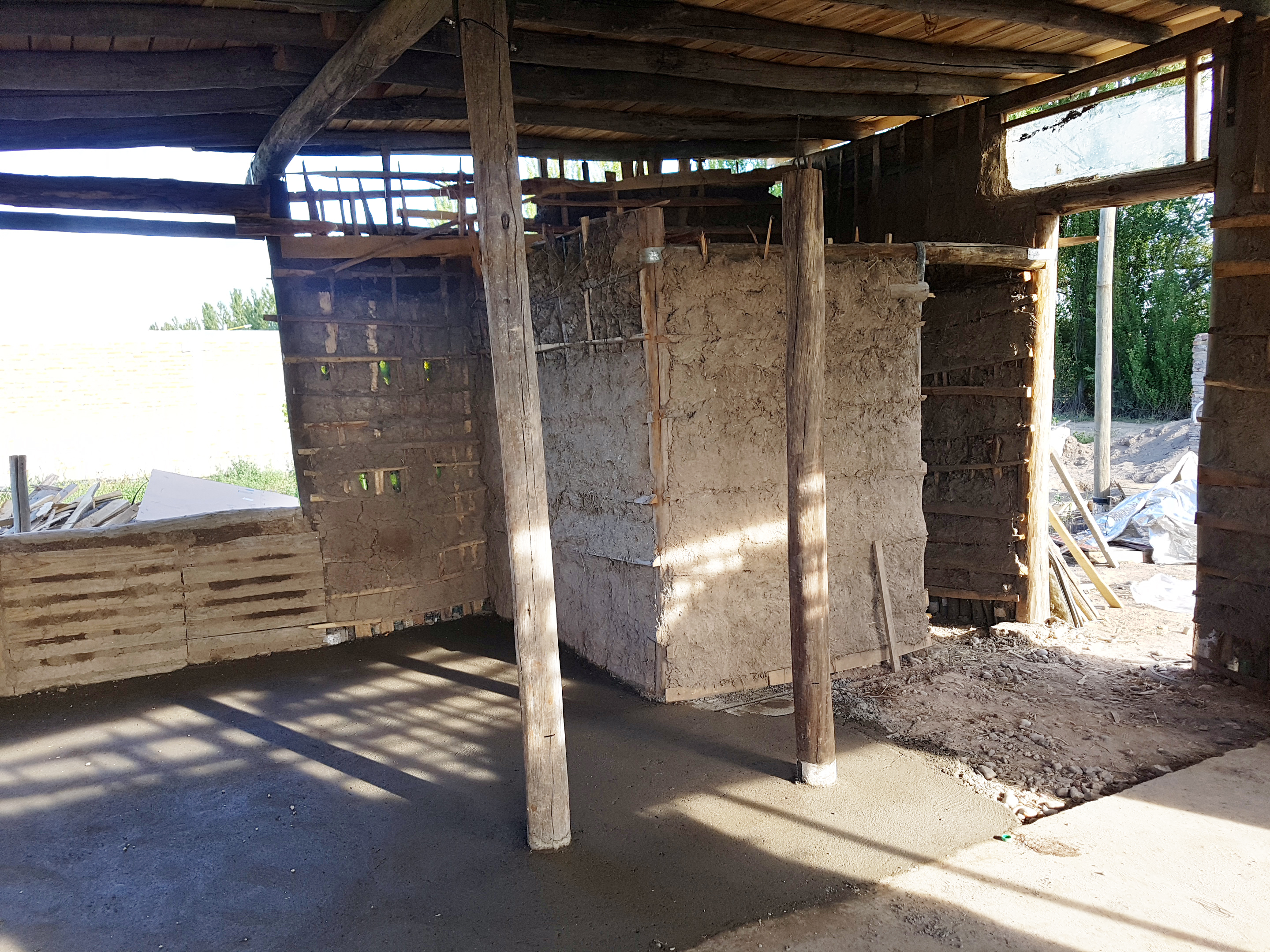 • Luego de unos días, cuando todo estuvo oreado y seco, se comenzó con el revoque grueso. Se consigue mezclando tierra (preferentemente arcillosa) con arena fina.
