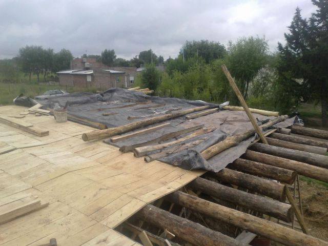 La cobertura o techo “vivo” funciona como una maceta. Primero, un entablonado está asentado sobre los postes de la estructura. Luego es cubierto con cartón y sobre ello dos capas de nailon grueso, lo que hará de aislación. Arriba, una capa de 20 cm de tierra de espesor que luego se puede cubrir con alguna especie preferida del propietario o se utiliza la maleza o plantas silvestres propias del lugar.