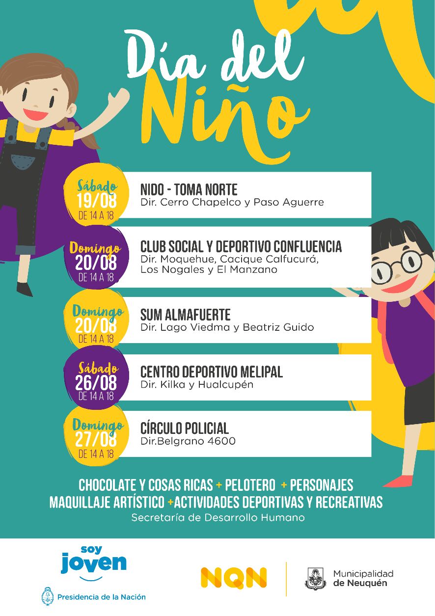 Además, el municipio organizó festejos tanto para hoy y mañana en diferentes asociaciones barriales en las que habrá juegos, merienda y personajes.