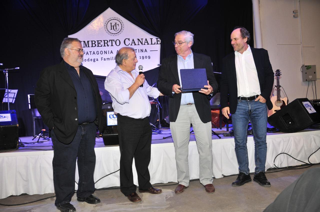 La noche se prestó además para dos reconocimientos: primero a Norberto Girardeli, de Bodega Agresgtis, que dejó la presidencia de la Ruta del Vino luego de 12 años en manos del enólogo y bodeguero Marcelo Miras. Luego, los hermanos Guillermo y Germán Barzi, contaron la importancia del premio que la bodega recibió hace pocos días. Se trata del premio Premio AlimentAr, organizado por Banco Galicia y Exponenciar S.A., y apoyado por la Secretaría de Agroindustria de la Nación. Canale recibió la distinción por ser una de las bodegas que llega a más paises desde Argentina.