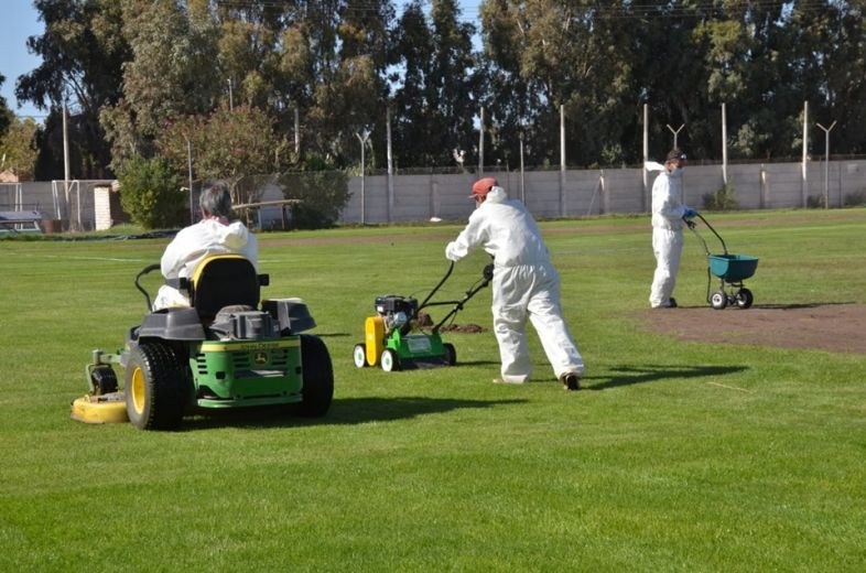 “La segunda etapa fue de escarificado y erosión de todo el campo. Se realizó ese trabajo para que tenga más oxígeno. Extrajimos la maleza antigua, así queda más espacio para re-sembrar. Después se siguió cortando y se empezaron a reparar los sectores más afectados, la mitad de la cancha y las áreas”, añadió.