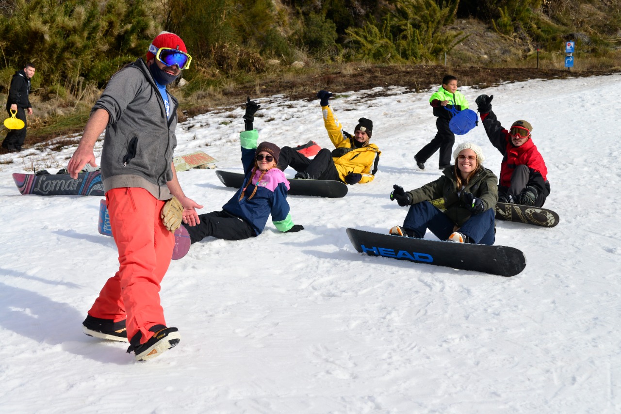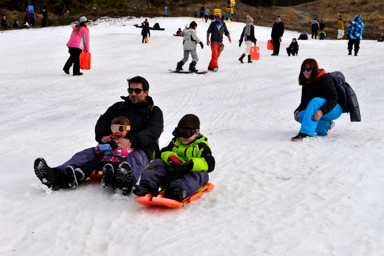 Abundan los gritos, risas y expresiones de felicidad. Para muchos alcanza con deslizarse sobre un culipatín por la pendiente dando saltos y gritando al viento para que la jornada sea ideal. Otros visitantes aprovechan que hay poca afluencia de personas, para animarse a dar los primeros pasos sobre una tabla de snowboard o un par de esquíes.