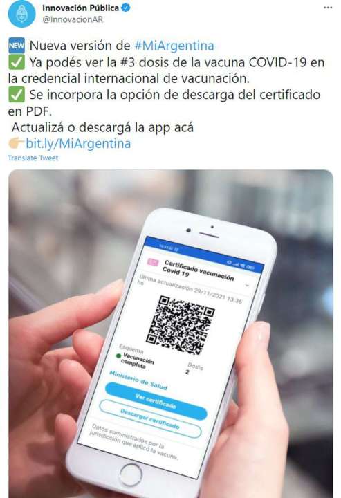 Desde hace días, quienes tienen la aplicación Mi Argentina no encuentran el certificado de vacunación de Covid 19 entre sus documentos, algo cada vez más necesario, sobre todo ahora que el pase sanitario entrará en vigencia.