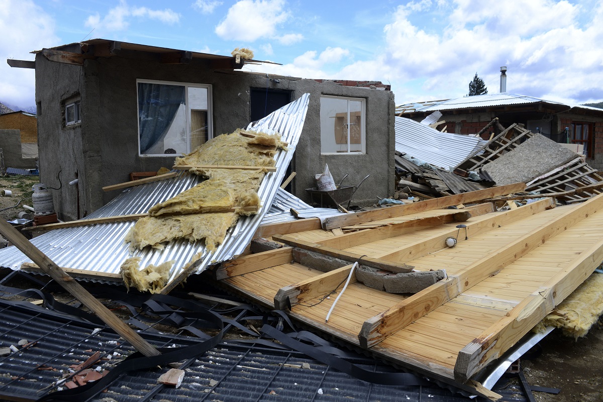 La voladura de techos o chapas parciales afectaron a casi 80 viviendas y se cayeron más de 200 árboles en el ejido de Bariloche, donde se vio afectado el tendido eléctrico con cortes de luz en varios barrios.
