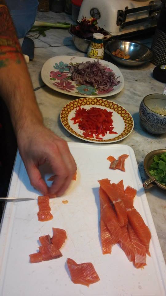 Trucha salmonada (preferentemente la parte de la cola porque es mas firme y no se desgarra)