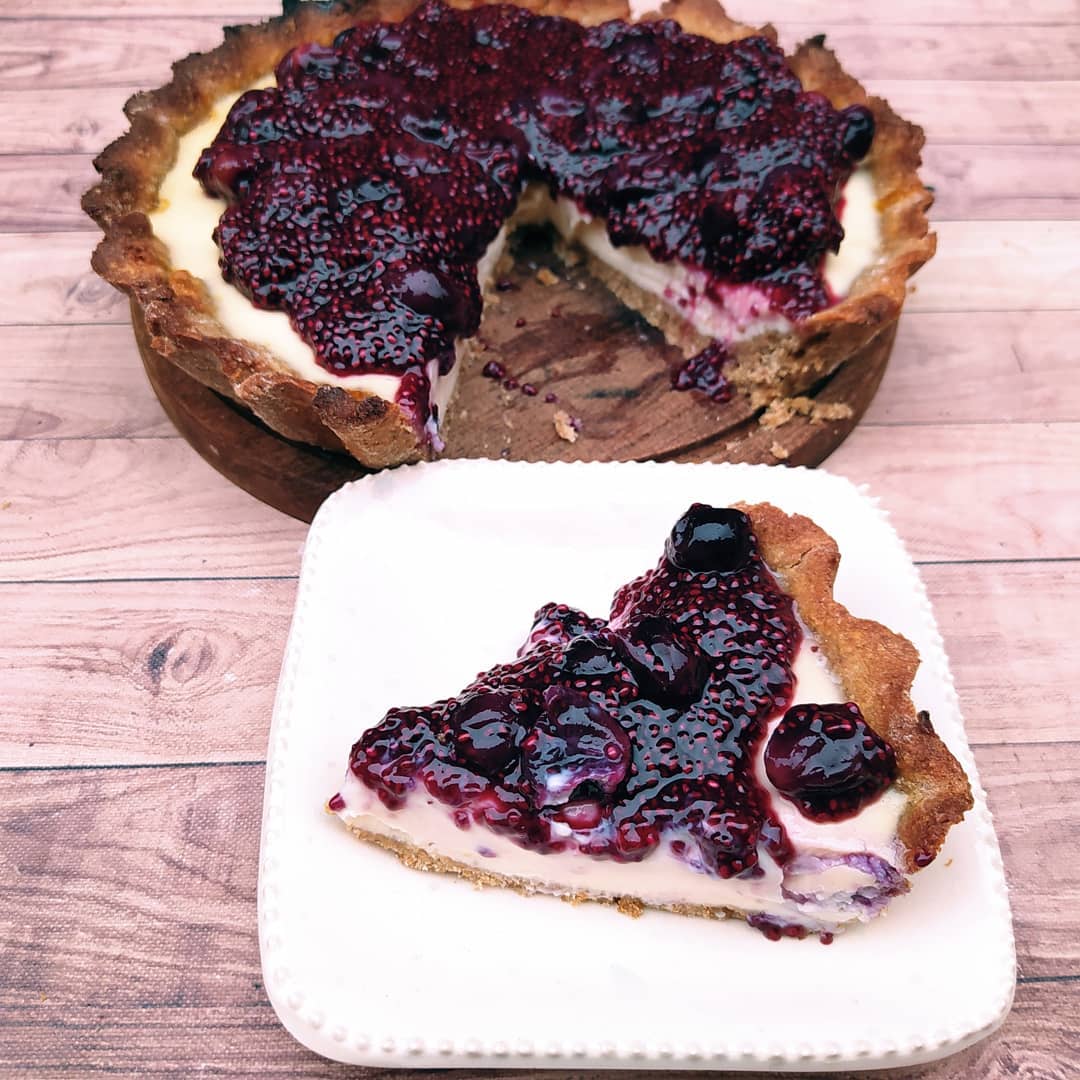 Para el relleno mezclamos en un bol la leche con el almidón de maíz. En otro recipiente mezclamos el queso crema y el huevo. Luego incorporamos la leche con el almidón de maíz y la miel. Todo tiene que quedar bien integrado. Esta preparación se coloca sobre la masa cruda y se lleva a horno pre calentado a 180° por aproximadamente media hora.