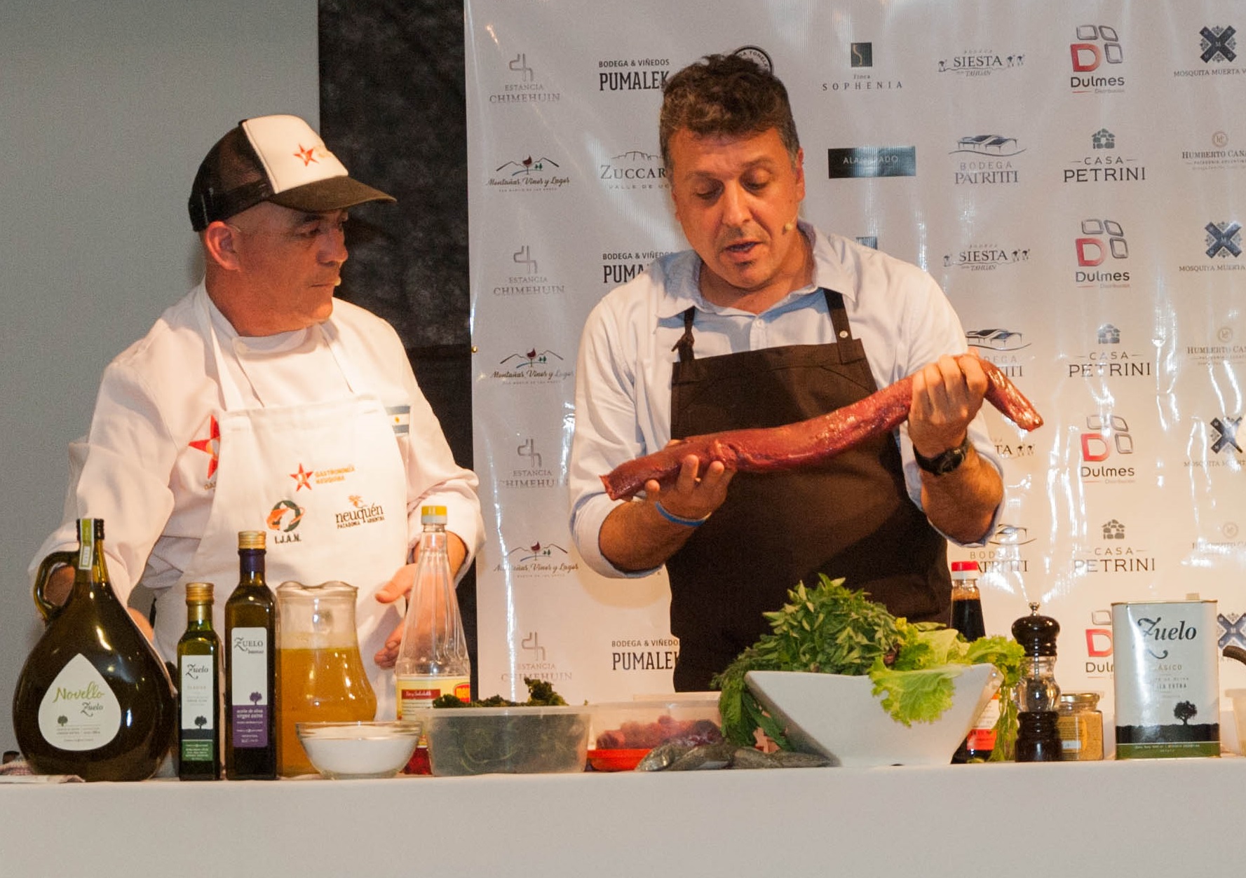 Los cocineros elaborarán sus platos, y compartirán las recetas con los presentes, en base a productos regionales y carnes de trucha, ciervo y guanaco, de criaderos de la zona. También de vaca, a través del programa “Carnes del Mallín”, coordinado por el Centro Pyme Adeneu, que presenta productos premium producidos de una manera diferenciada en la zona de Junín de los Andes: estas carnes se diferencian por ser libres de aftosa sin vacunación, de animales criados y engordados sobre la base del pastizal de los mallines en campos que manejan sustentablemente sus recursos y por tener trazabilidad desde origen hasta su terminación.