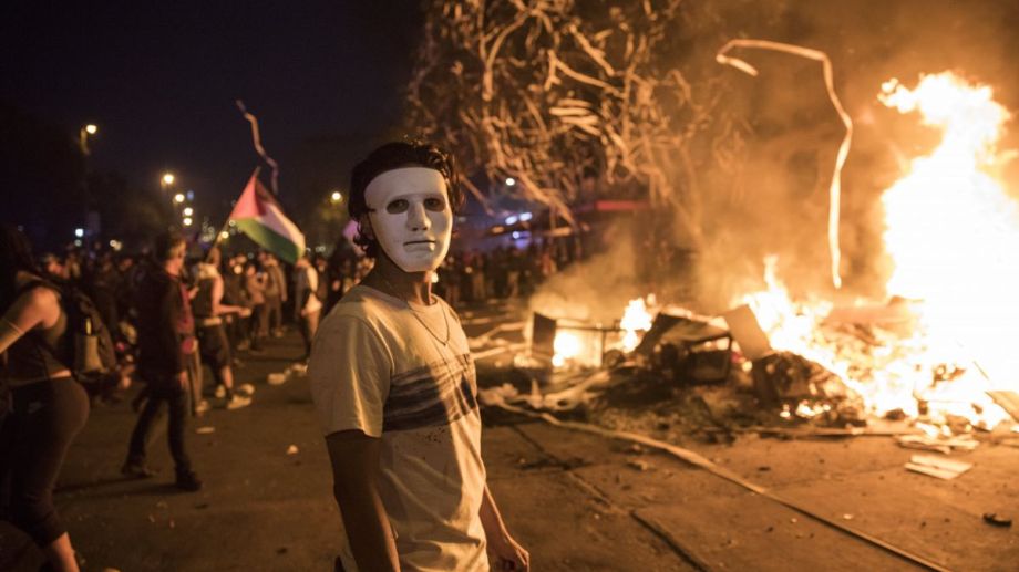 En las inmediaciones del palacio presidencial, una columna de humo por barricadas en llamas se elevaba en medio de detonaciones de bombas de gases lacrimógenos, sirenas de bomberos, tanques lanzaa guas, piedras y palos, en una batalla entre fuerzas del orden y manifestantes radicales que piden a gritos: «Renuncia Piñera».