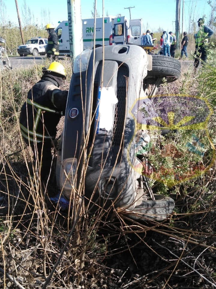 La Ruta 65, a metros de la conocida "curva de Verani", fue escenario de un choque entre dos camionetas tipo pick up. Tras el impacto, informó Bomberos de Allen, uno de los vehículos terminó cayendo dentro de un desagüe próximo a la calle rural N° 4.
