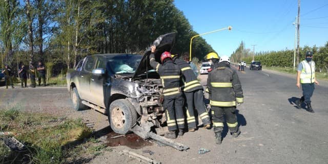 La Ruta 65, a metros de la conocida "curva de Verani", fue escenario de un choque entre dos camionetas tipo pick up. Tras el impacto, informó Bomberos de Allen, uno de los vehículos terminó cayendo dentro de un desagüe próximo a la calle rural N° 4.