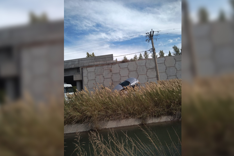 El auto de marca japonesa terminó colgado sobre un tensor y muy cerca de un canal.