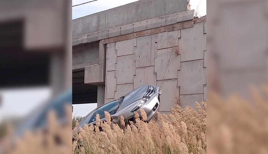 Chocó debajo de un puente de la Ruta 22 y el auto quedó colgado
