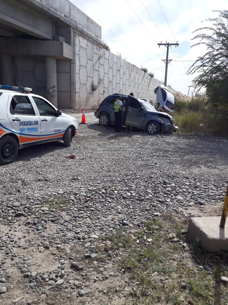 Un Chrysler Pt Cruiser, que circulaba desde Allen hacia Cipolletti, impactó contra un Honda City que se dirigía por el desvío hacia Fernández Oro. Esto sucedió en el desvío que se ubica debajo de uno de los puentes.
