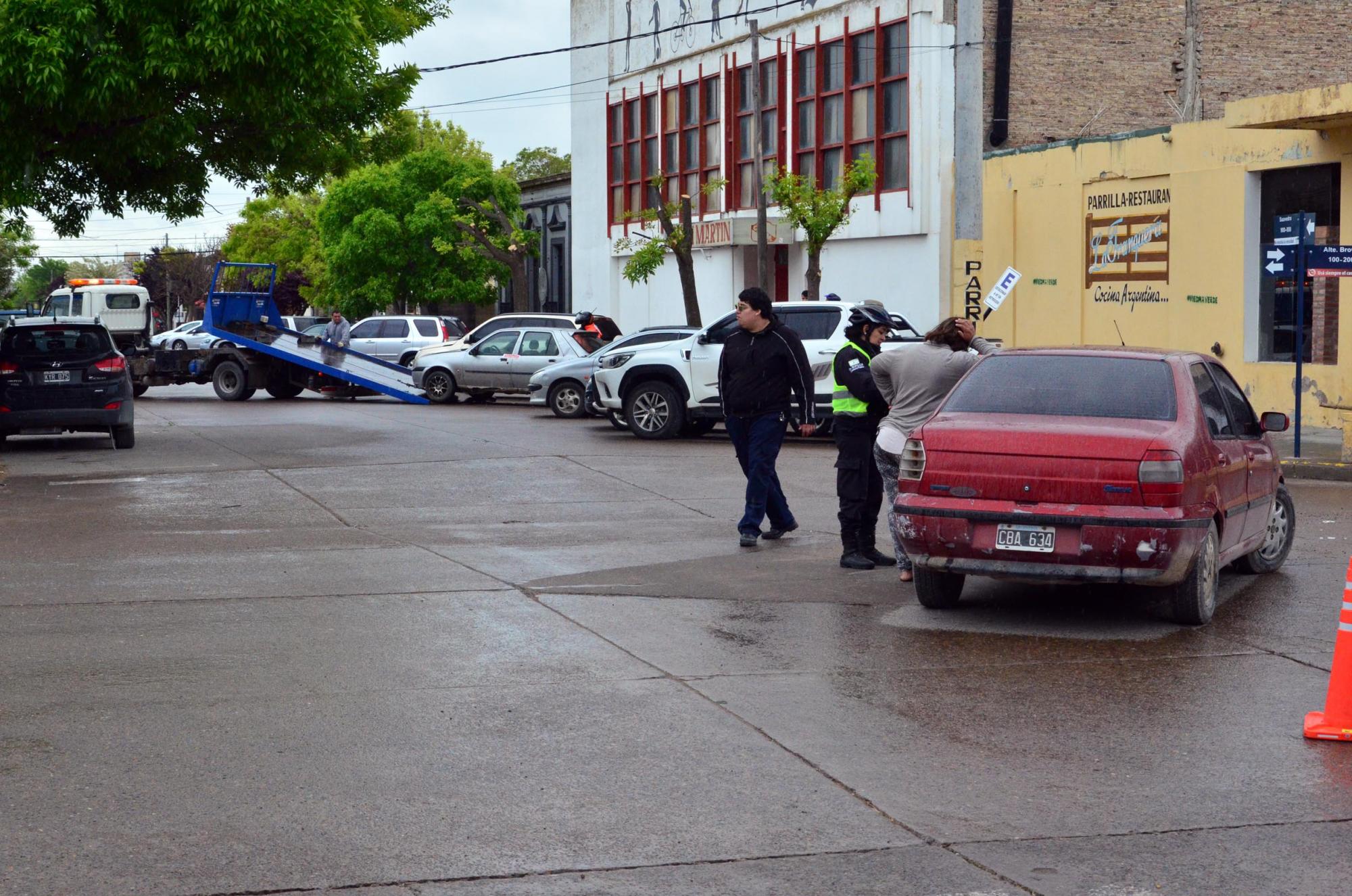 La lluvia les jugó un mal momento a dos automovilistas que chocaron en la intersección de Brown y Saavedra, pero lo peor fue para el conductor de un Ford Fiesta que terminó arriba de la grúa municipal al ser secuestrado por falta de documentación.
