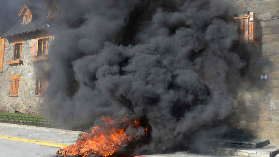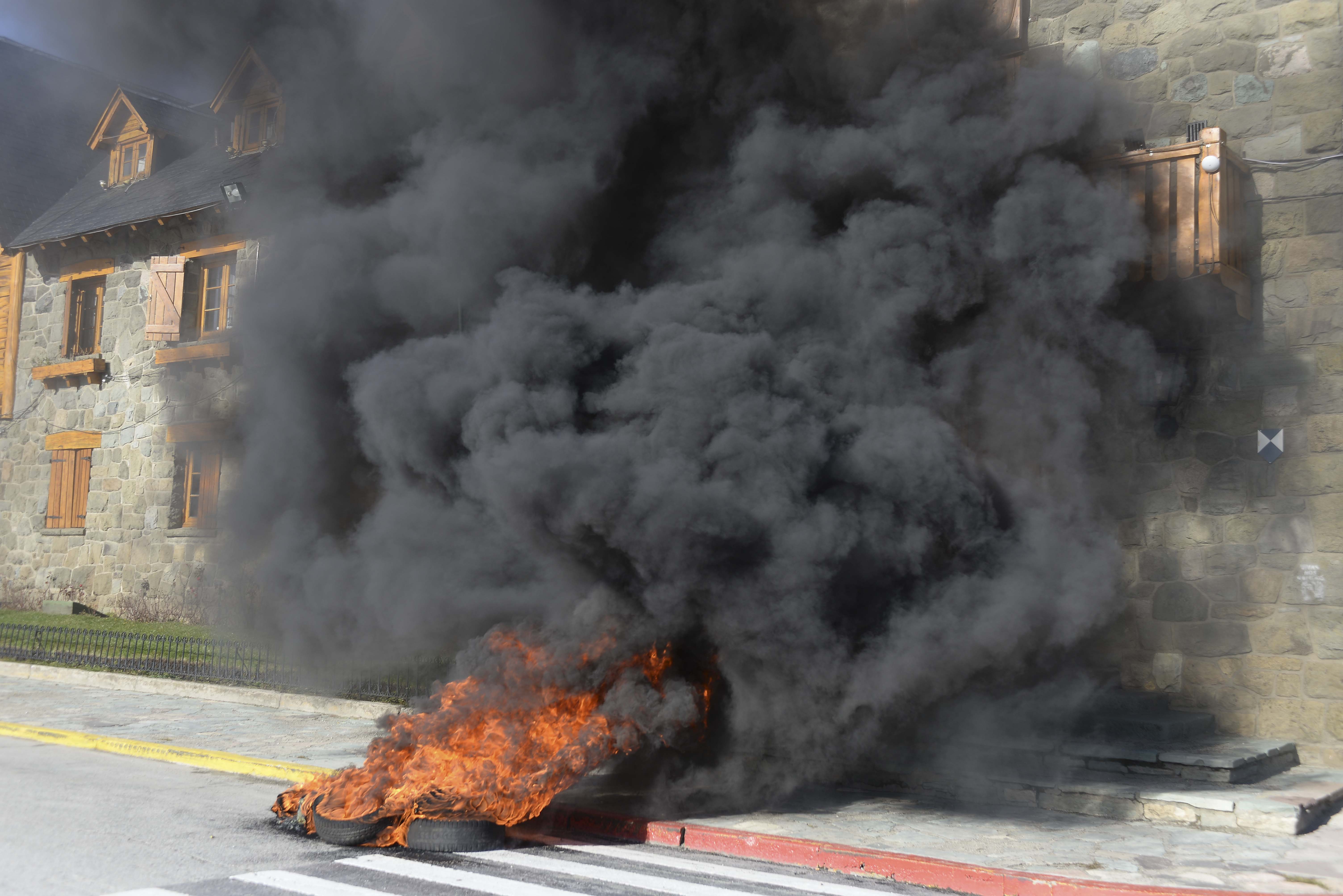 «¡Choferes presentes, la UTA ausente!», gritaron los choferes de la empresa Mi Bus mientras marchaban por la calle Onelli esta mañana en reclamo por el pago desdoblado de salarios. La movilización culminó en el Centro Cívico con la quema de neumáticos a muy pocos metros del ingreso al municipio.