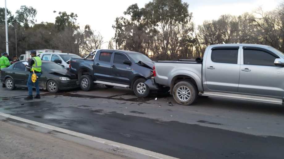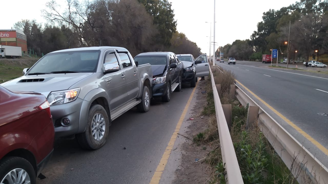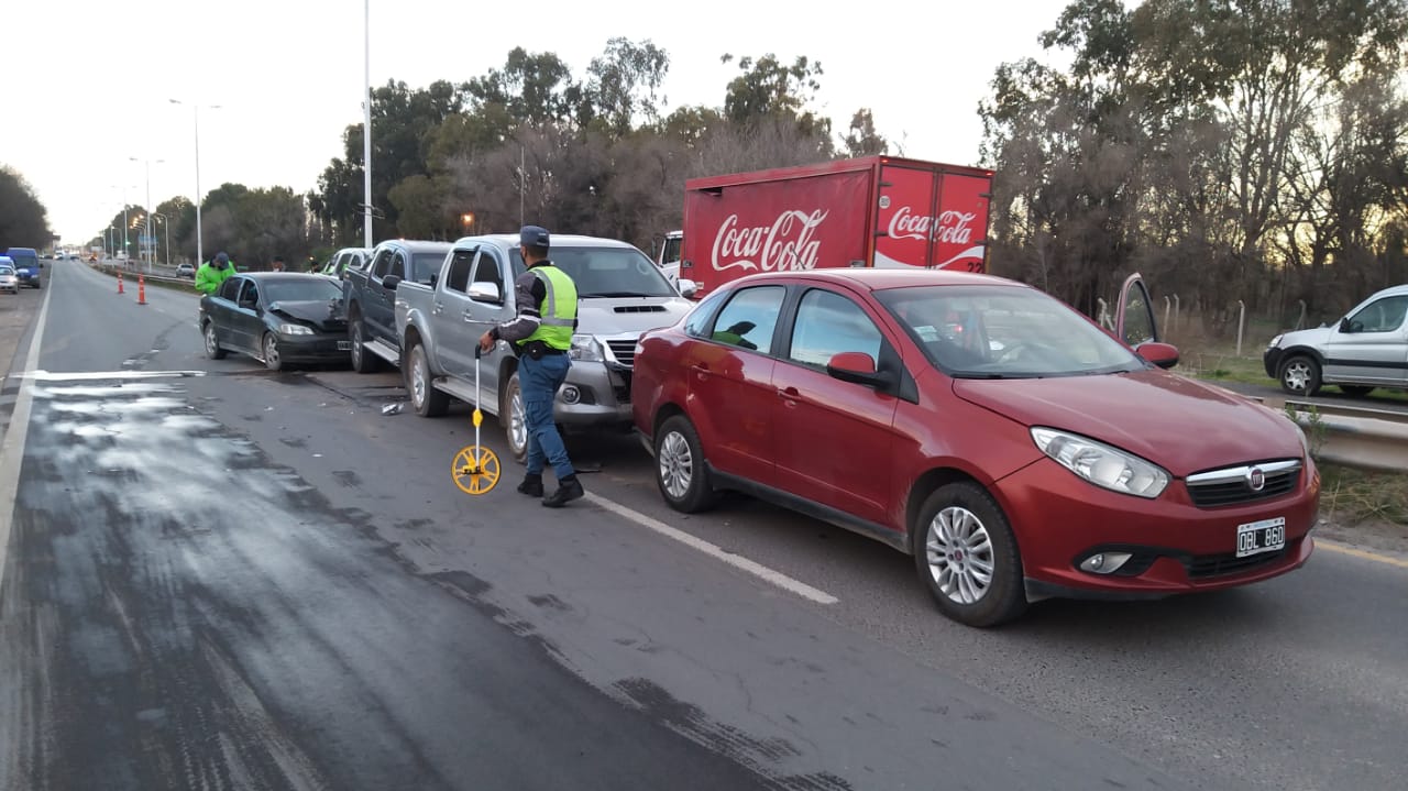 El accidente se produjo entre cinco vehículos que quedaron incrustados entre sí. La conductora de un Fiat Siena, de 38 años, relató a la policía que se le cruzó un perro por la ruta y por eso tuvo que frenar de repente. Luego un Toyota Hilux, Una Ford Ranger y un Chevrolet Astra impactaron unos con otro.