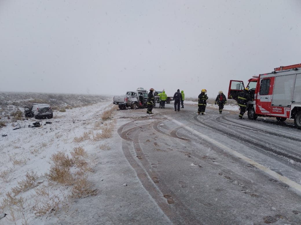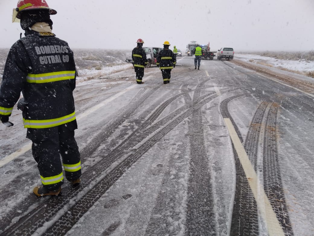 Este mediodía ocurrió un choque frontal, a unos quince kilómetros a la salida de Cutral Co en sentido a Zapala, por la ruta 22. Cinco ocupantes de los dos vehículos fueron trasladados al hospital local.