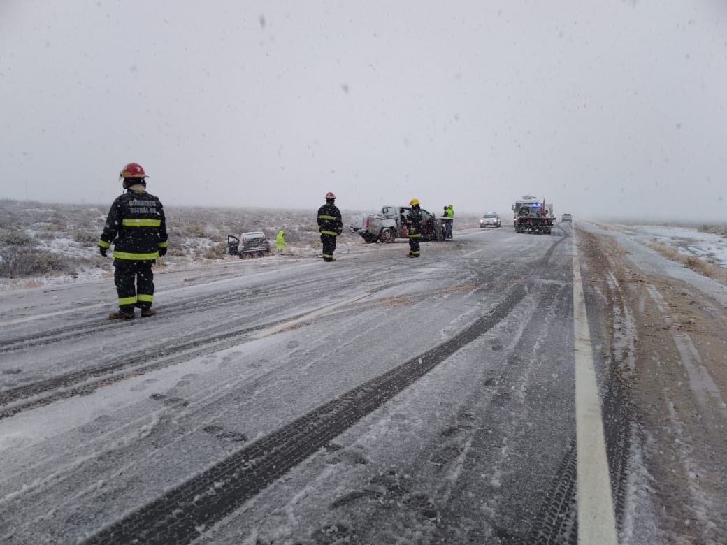 En el lugar, el kilómetro 1346 las condiciones son muy complicadas por la presencia de hielo y nieve. La circulación se cortó hasta tanto se terminen los peritajes.