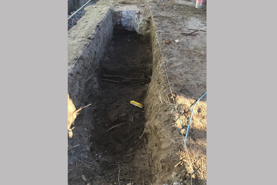 Mientras removían la tierra, los albañiles dieron con los restos de un esqueleto humano.